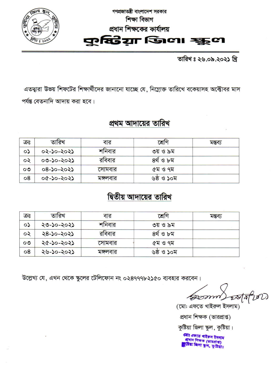 Regarding the payment of salaries for the month of September 2024 (including previous arrears). |